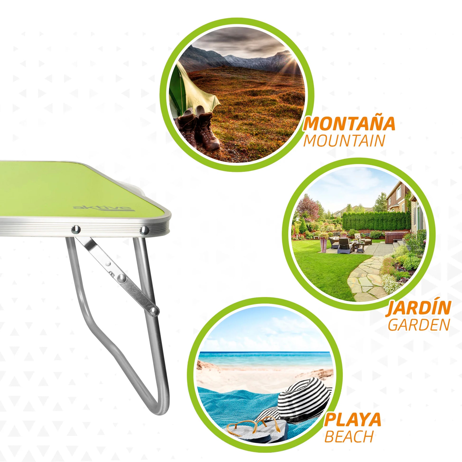The White Aktive Camping folding table measures 60x40x25 cm. It has been manufactured with an aluminum structure and a wooden board type MDF. It is foldable and includes a fixation system on its legs that serves to secure the closure or fix it when it is open. It has a handle to facilitate its transport. Discover all available options in folding table of Aktive Camping. & iexcl;Perfect for use in outdoor spaces!