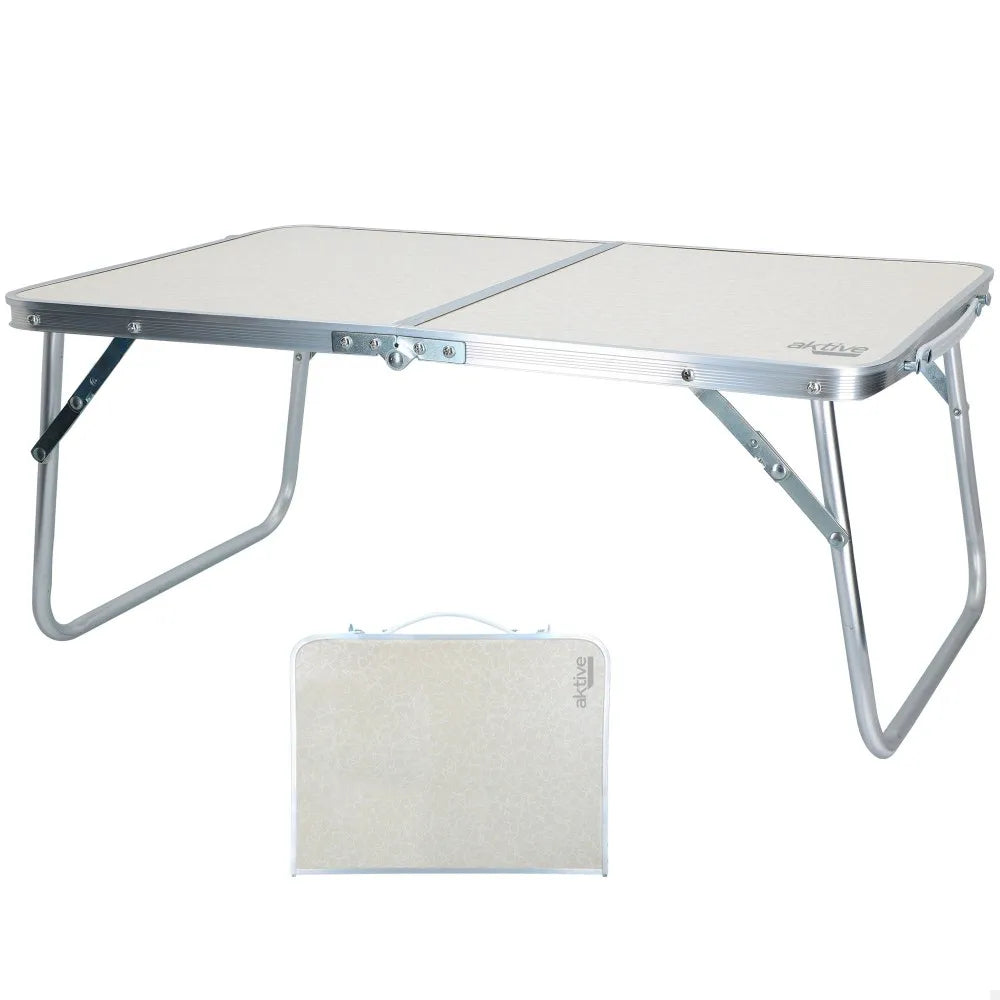 -Multifunctional camping table Aktive Camping cream color, measures 60x40x25 cm, folding structure and board