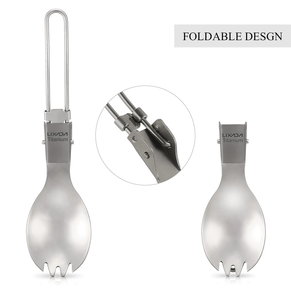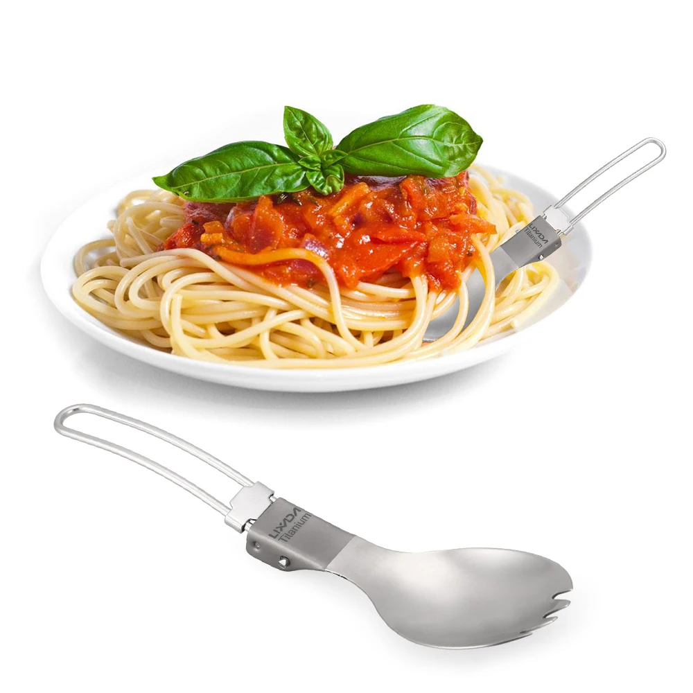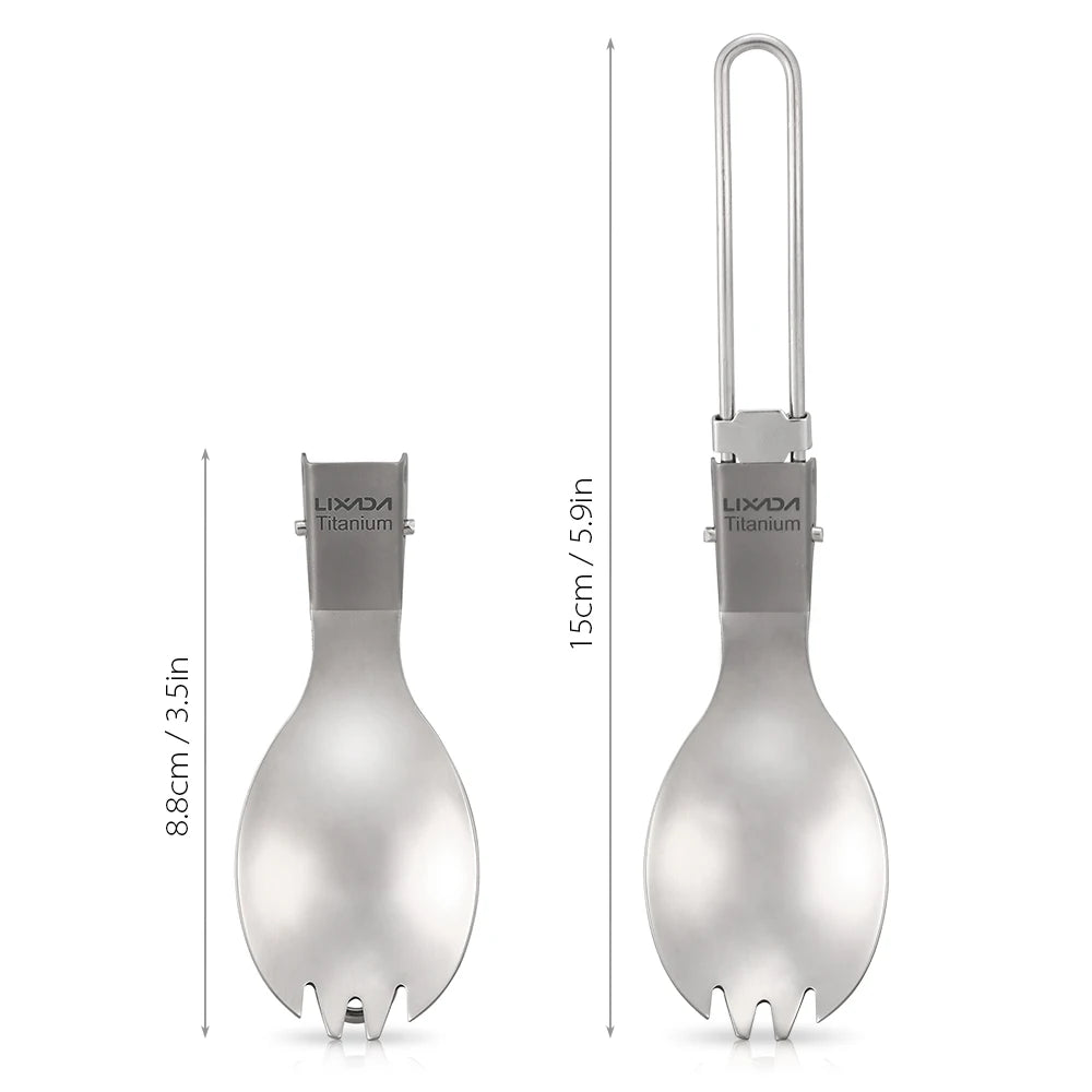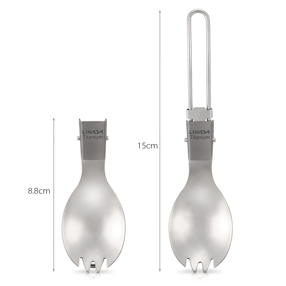 This spork is made of titanium material, lightweight and durable. It can be folded when not used, very convenient for outdoor camping, hiking, backpacking and also good for home use.